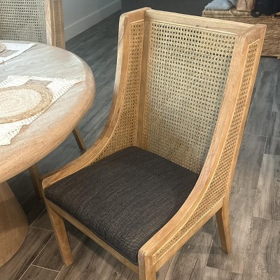Christopher Knight Home Set of 2 Maurers Cane and Wood Upholstered Dining Chairs Charcoal/Natural