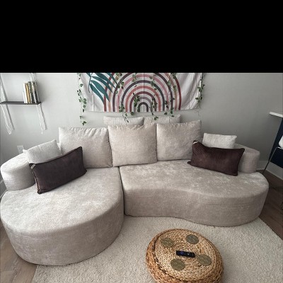 - SOFT PILLOWS: Featuring a gracefully curved seat, this sofa offers ergonomic seating. With 7 soft pillows included, you'll enjoy extra support and comfort, perfect for sitting, lounging, or napping, meeting all your relaxation needs.