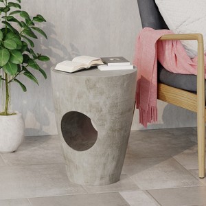 - A TOUCH OF PERSONALITY: Bring your outdoor space to life with our end table that features a modern structure with an artistically cut hole in the center. With charming aesthetics, this side table will be sure to enliven any home.