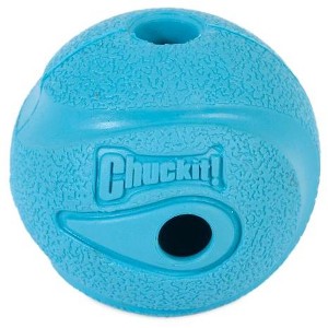 My dane/mastiff/akita/husky (crazy mixed up) 10 year old girl loves this ball because of the whistle! We have some of the other Chuckit balls, but she won't even go after them if I throw them.