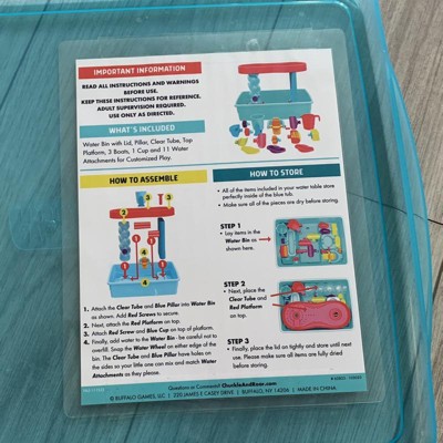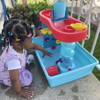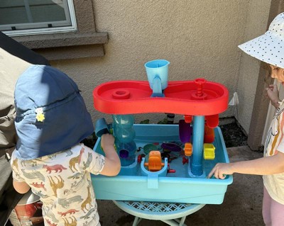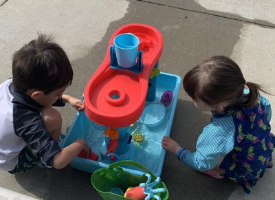 I had been wanting to get a water table for my kids for a couple summers now but just really did not want, nor have the room in my backyard for, a giant plastic monster. This table top water table, with its own storage bin (!), was the answer to my dilemma. The bin can just go on a shelf in my garage when not in use instead of permanently living in the backyard, becoming sun faded and filthy (and taking up a ton of room). My kids, 3 and 5, played with this for a solid 90 mins yesterday. Now, the only reason this gem did not get the whole 5 stars is because the little pieces you attach that the water is supposed to flow through, do not work well at all. My kids seemed fairly unphased by this but I think for slightly older kids, it would make the toy frustrating and less fun. They would not be able to enjoy the “engineering” aspect of creating a path for the water to flow through. If there had been more thought put into the functionality of those pieces, this would be the perfect outdoor toy. But like I said, little kids likely won’t care.