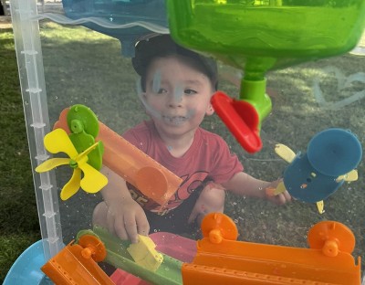 My little guy has been asking for "water day" but it has been to cold to go outside and this was the perfect solution! We set it up in the tub and he played to his hearts content. Love the size and portability. The art easel feature was another fun, unique aspect that made this toy one of a kind!