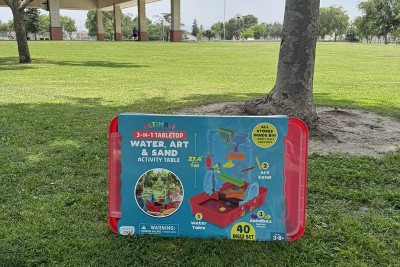 - All-in-One Play Set: Transforms into a 27" tall reusable art easel for creative adventures and a water and sand table for sensory exploration.
