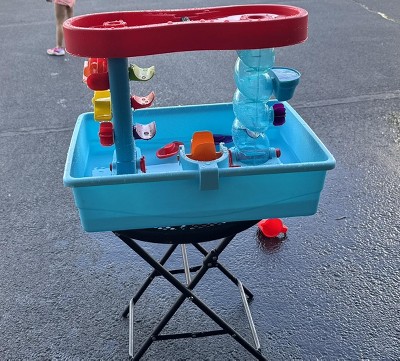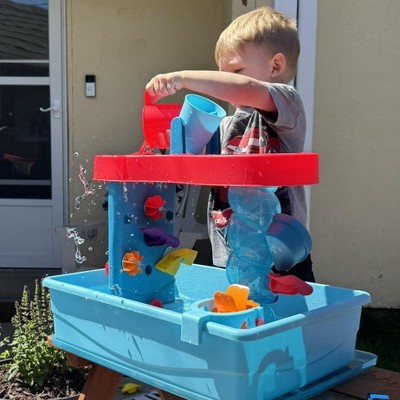 Terribly designed. Someone clearly went, we can make $40 selling plastic and didn't bother to engineer or test anything. The spinners dont spin because dripping water hits them from both sides. Unless the water amount is perfect the slides dont even make the spinners spin. One side of the table is pointless as there are no holes for water to even hit spinners/slides/etc. Bucket on top only overflows, barely tips. Will be returning.