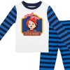 Bring a frightful twist to bedtime with this boy's 2-pack Chucky pajama set. The set includes a white long sleeve tee with blue and black striped sleeves featuring Chucky in a blue window, plus a matching pair of striped sleep pajama pants. The set is made from cotton and polyester for a soft, breathable feel. For effortless care, machine wash this set on cold with like colors and tumble dry on low heat.