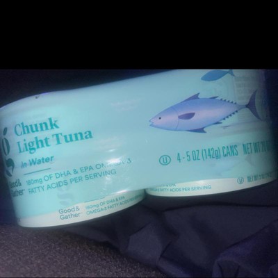 This 4-pack of Chunk Light Tuna in Water from Good & Gather™ helps make sure your pantry is stocked with a family favorite. Whether it's lunch, dinner or a snack in between, this dolphin-safe, wild-caught chunk light tuna is a quick and affordable source of protein. Shelf stable and easy to prepare, this is the perfect option to keep in your pantry or desk, and it's great on top of salads, in plain or toasted sandwiches, added to casseroles or simply spread on crackers for a quick and tasty snack.