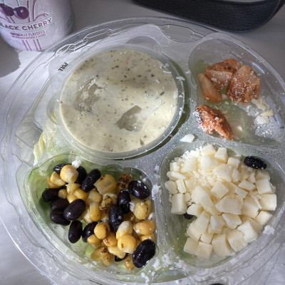 Absolutely love this salad!! Definitely needs to be eaten within the day or next day. I wish there was more corn is my only thing. I’m vegetarian so i just don’t put the chicken in and it’s SO good!! the dressing is what makes it amazing