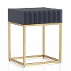 Upstyle a sitting room or any living space area with this unique side table. The lifted facet panel on the front side has a hidden drawer that pulls out on smooth metal glides. Store candle lighters and coasters in the table elevated by a gold base frame. Complete the collection with the available matching casegoods.