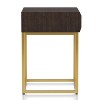 Upstyle a sitting room or any living space area with this unique side table. The lifted facet panel on the front side has a hidden drawer that pulls out on smooth metal glides. Store candle lighters and coasters in the table elevated by a gold base frame. Complete the collection with the available matching casegoods.
