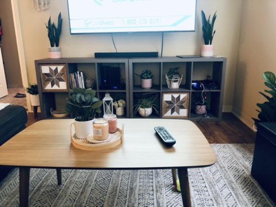 Been needing to replace our coffee table for quite some time. We could not find one that made us want to buy it for one reason or another. Found this, on sale I have to add, on the Target app. What a steal of a deal. I thought I would get it for now and later use it elsewhere in the house but it has a cool style to it down to the ‘wood grain’ pattern. You can not tell it was so inexpensive. I’m done looking. Wish everything was that easy ;)