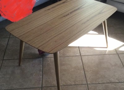 Love the simple midcentury look of this table and the price can't be beat. The wood color brings a natural warmth to our space. However we use it for an Airbnb and I'v noticed that after about 9 months of use the veneer top surface kind of bubbles up over time from the moisture of wiping it down (I'm guessing) with 409 a couple times a week. It's inexpensive enough that don't feel bad replacing it but just know that the top surface isn't super durable.