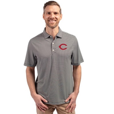 Cincinnati Reds Cutter & Buck Forge Eco Heather Stripe Stretch Recycled Mens Polo - Black Heather - Medium