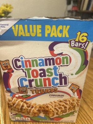 - CONTAINS: One regular cardboard box of Cinnamon Toast Crunch Treat Bars, Snack Bars, 8 Ct, 6.8 oz; Perfect for instant snacking