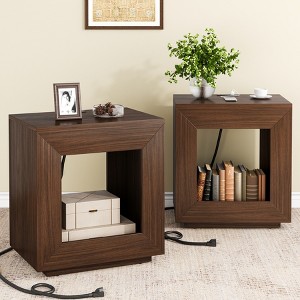 CIPACHO Rustic Brown 1 Piece Wood End Table 2 Tiered Square Side Table with Storage Shelf for Living Room Entrance