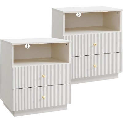 CIPACHO Set of 2 White Modern Nightstands - 2 Drawers, USB-C & AC Outlets Charger Station for Bedroom