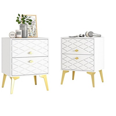 CIPACHO White 2-Piece Nightstand Set - 2-Drawer Modern Wood Table with Gold Legs Bedroom/Living Room