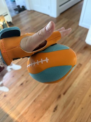 We are having so much fun with this football set. The whole family can take turns with the adjustable gloves. I love how the Velcro on the gloves grip the ball. Usually I fumble when playing with the kids but this ball is easy to throw and even easier to catch. I highly recommend this set to play with older kids. My teens are enjoying this new family game.