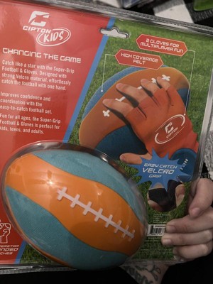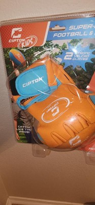 Cipton easy closure football game is a really nice. It helps kid practice catch and throw of football. It also helps kids to catch the football and run. My little kid is practicing football with this everyday. It comes with two gloves and one ball all with velcro.
