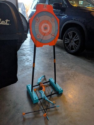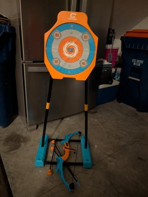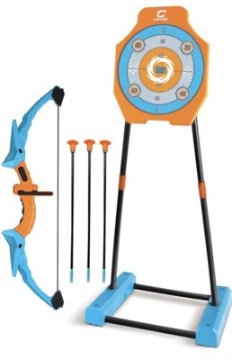 Cipton 3-1 Moving Target Archery Set its the perfect toy for my son, he loves practicing on targets and this is really great, he can move it around the house, includes darts and target that make sounds and also count his score, very sturdy and well made