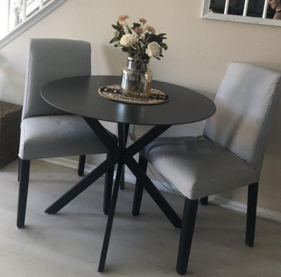 Circi Collection Round Dining Table with Glass Top - Black and Charcoal - CosmoLiving by Cosmopolitan: Steel Frame, Water-Resistant - 2 of 4Circi Collection Round Dining Table with Glass Top - Black and Charcoal - CosmoLiving by Cosmopolitan: Steel Frame, Water-Resistant - 3 of 4Circi Collection Round Dining Table with Glass Top - Black and Charcoal - CosmoLiving by Cosmopolitan: Steel Frame, Water-Resistant - 4 of 4