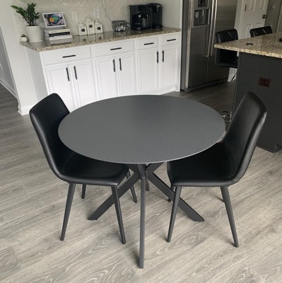 Circi Collection Round Dining Table with Glass Top - Black and Charcoal - CosmoLiving by Cosmopolitan: Steel Frame, Water-Resistant