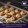 - DURABLE BAKING PAN: 12-cup muffin pan features heavy gauge steel construction with warp-resistant, rolled-rim design for beautiful, long-lasting baking performance