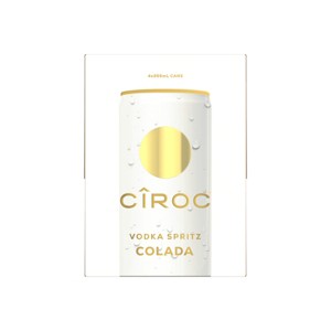 Elevate your next celebration, big or small, with CIROC Vodka Spritz Colada. Made with our finest ingredients in a slim, ready-to-drink can, this cocktail is prepared with vodka distilled from fine French grapes and features creamy coconut and juicy pineapple flavors with a rich finish. CIROC Vodka Spritz Colada is gluten-free, made with natural flavors, and contains no artificial sweeteners. Taste the luxury by serving chilled in the can or over ice. Includes four 7% alc./vol. 12 fl oz slim cans of CIROC Vodka Spritz Colada. Please drink responsibly.