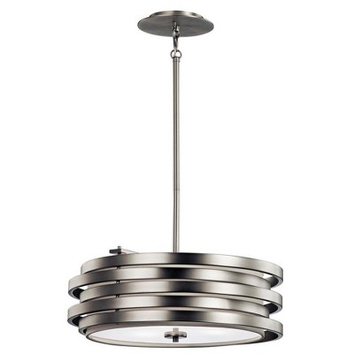 Cirus 14" 5 Light Convertible Pendant with Tempered Etched Glass and White Linen in Auburn Stain