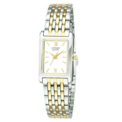 Citizen’s Quartz dress watch is a timeless classic, with a gold-tone stainless steel bracelet and striking black dial with Crystal accents on bezel. This watch features Day / Date, 3 Hand and Fold Over Clasp with Push Buttons.