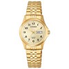 The stainless steel gold-tone Quartz from Citizen is designed for ladies with refined tastes. It features a snap-on stainless steel caseback with room for engraving, and is paired with a champagne dial showcasing luminous gold-tone minute and hour hands, and gold-tone second hands. The unique watch also has a stainless steel gold-tone expansion band to pull the entire look together and provide a complete package. This is a simple, elegant watch for ladies with discerning tastes.