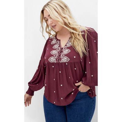 • Model wears a City Chic size S/16 and is 178 cm in height. Bust: Close fit. Waist: Relaxed fit Hips: Relaxed fit. Length: This plus size top is hip length. Centre back measurement: 68cm/26.6 inches.