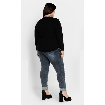 • Model wears an Avenue size 16 and is 176 cm in height. Bust: Relaxed fit. Waist: Relaxed fit. Hips: Relaxed fit. Length: This plus size sweater is hip length. Center back measurement: 66 inches/26 cm.