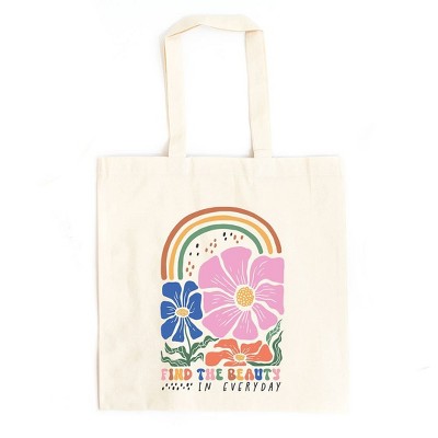 - Canvas Tote Bag, Tote Bag, Natural, Black, Everyday, Everyday Tote Bag, Boho, Self Love, Positive, Motivational, Love, Flowers