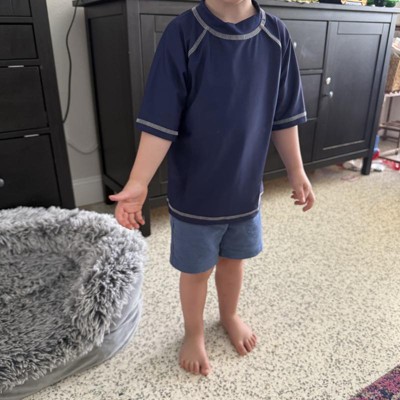 [This review was collected as part of a promotion.] My little guy is finishing up swim lessons soon, and he usually refuses to enter the water without his swim shirts on. I am trying to get his clothes to last more than one season so my 3 year old 90th percentile little guys is trying out a 4T for size. While a little bit large throughout the body and arms, the head hole seems very tight. We were able to make it work though. I love putting on a sun shirt for him at the beach or pool so I am sure he is mostly protected from the sun. I received an incentive to write this review.