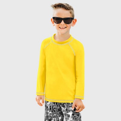 City Threads Boys UPF 50+ Short Sleeve Rashguard - USA-Made, Yellow, 3-6M