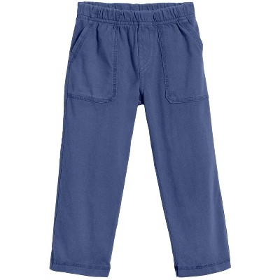 The girls 100% cotton pull-up waist Pocket Pant is a great everyday pant for active kids. Made from a breathable cotton knit jersey that will keep kids cool and comfortable for school, camp, sports, weekends, vacations, and lounging. The fabric is locally knit and locally dyed, and great for those with sensitivities and allergies. Also has UPF 50+ sun protection.