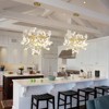 Inspired by the natural beauty of ginkgo leaves, this gold chandelier adds glamour and a sophisticated touch to your space. The matte white ceramic Ginkgo Leaf is meticulously crafted, infusing an element of elegance to the aesthetic. Crafted from aluminum with a gold foil finish frame, it exudes an air of opulence. Transform your living area, dining room or kitchen island with this striking chandelier to elevate your space.