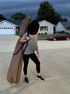 [This review was collected as part of a promotion.] Clam Corp-Clam Quick Set Pavillion Camper 12.5x12.5 Foot Outdoor Gazebo Canopy Shelter is amazing! It truly pops up for use in 60 seconds. The carrying case bag is easy to carry and go anywhere from to my back yard to camping. The easy to read booklet with great pictures tells you step by step to put up and take down.