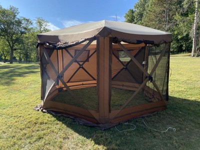 [This review was collected as part of a promotion.] CLAM Quick Set Pavilion Camper 12.5 x 12.5 Foot Outdoor Gazebo Canopy Shelter is super easy to set up and even has a very easy-to-put-down floor. We have used this for outdoor get-togethers, a friend's wedding to put the bar, soft drinks, and some seats in, and of course for camping! It is the easiest outdoor tent/gazebo that I have ever set up. It takes less than 20 minutes, a little longer if you are putting in the floor, you can use the floor or not use it. it depends on the situation. The built-in wind panels are another great feature and can be down or rolled up. All in all, this is a very versatile item and I see it getting a lot of use this coming spring and summer!