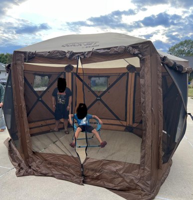 [This review was collected as part of a promotion.] I got this about a month ago and we decided to give it a try when we had people over to hang out. First of all it’s supposed to be a quick set tent. It comes in its own carry travel bag, which is nice. The first set up actually sucked, I’m not sure if we tried to open it wrong or if it came with one of the corners and twisted wrong, so it took 6 of us and 30 minutes to get it ready for set up. After that little mishap it was a lot easier. It just pops right up! I love that it has the floor you can use if you want or leave it out. I also love how you can open the sides by rolling the flaps up, and you can choose which sides you want open and closed. It is really roomy! We had about 10 kids hanging out in it and there was still extra room. It is great at keeping the mosquitoes out! Taking this down was pretty simple too. It took just a few minutes to release. It did take a few minutes to get it wrapped tight enough to fit back in the bag. Maybe some cinch straps would be nice. Overall it is a really awesome tent and I see us using it a lot in the future.