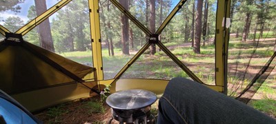 Love the flexibility. I use it on my patio to repel mosquitoes and camping is the absolute best. Protected me from rain and bugs! And with the panels... nice and toast too.