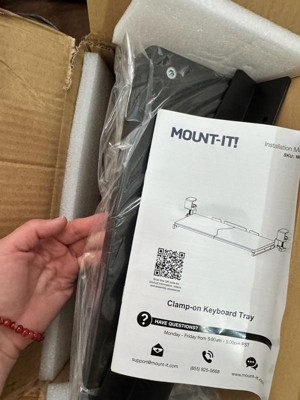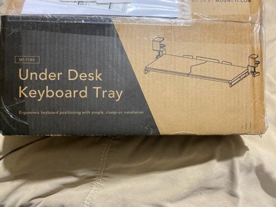 Maximize your workspace and enhance your comfort with this Mount-It! keyboard tray, the perfect addition to any desk at home or in the office. Featuring a smooth sliding design, this 24-inch wide tray easily pulls out for use and tucks away when not needed, freeing up valuable desktop space. Designed with ergonomics in mind, it positions your keyboard at the ideal height to reduce wrist strain and promote better posture during long work sessions. The spacious platform provides ample room for your keyboard and mouse, helping you stay organized and efficient throughout the day. The no-drill, clamp-on installation makes setup quick and hassle-free, while the durable construction ensures stability and lasting performance for everyday use.