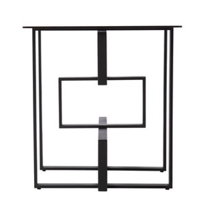 Your living space goes sleek and modern with this square side table. A gray glass tabletop easily holds a table lamp and your evening drink, while the unique metal base gives your design geometric flair. Tuck this glass-top end table alongside your family room sofa to keep your book or TV remote within reach, or station in your entryway to hold your favorite potted plant. Give your home a contemporary edge with this black accent table.