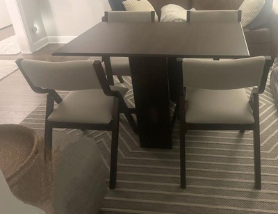 Wow. I’m impressed! I spent HOURS looking for the right table for my small apartment. I wanted something my family of four could have holiday meals at together. I wanted real material that wouldn’t need to be thrown away after one holiday. This is perfect! Not one blemish on any of the pieces. It is WOOD! Definitely has a bit more of a reddish tone than my walnut floors, but blends well. This will be folded down when family leaves and stored in the closet. I did have one small issue in the last step where the pre drilled holes were on the wrong side. I noticed it in step one but wasn’t sure how it would affect the table until the last step. I just drilled my own with a very tiny bit and continued on. Was not a fan of the Allen wrench approach, but wasn’t terrible. Took about an hour for me to assemble by myself. Folding chairs also came from Target!