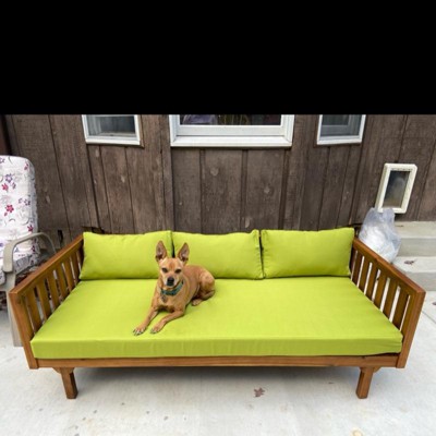 Claremont Outdoor 3 Seater Acacia Wood Daybed with Cushions Teak/Green - Christopher Knight Home: UV-Resistant, Water-Repellent Patio Sofa