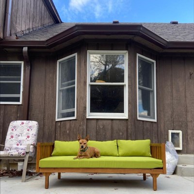 It took me and a friend less than an hour to put together. The screws attaching the arm rests were a little fiddly to get in but we got them attached eventually. I like the color, it’s a slightly deeper lime green. The wood seems to be good quality. The only thing I would change is the back rest, it’s not very high and the pillows don’t protect you from it digging in if you lean back. I got this daybed to lounge and read on though, so I don’t see that being a problem. One of the zipper pulls came off the cover while I was stuffing the pillows, but I was able to get it back on and zipped up. Just be cautious, the zippers aren’t the best quality. The whole thing is relatively low to the ground and the seat cushion is nice and thick but a bit firm. I quite enjoy it. I bought this patio daybed on sale, I don’t think I would have paid full price.