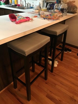 I ordered these in red to add a pop of color to the kitchen. I was so excited to receive these stools, and they looked great - - especially for the money. Unfortunately, after assembling one, I discovered they were much too tall for our bar, so had to return them. These Bar Stools are 32"; about 2" higher than the average bar stool. I'm back on the hunt....