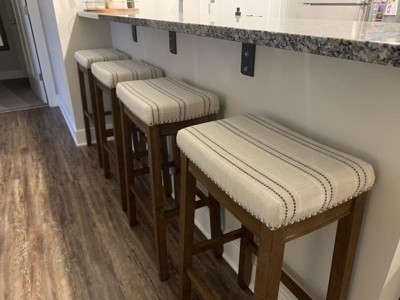 Stools look great and are comfortable. I would give them 5 stars, but the screws they provide are lower than subpar. The heads of the screws easily broke off and I was only using a screw driver. I bought stainless steel screws and added Gorilla Glue (clear) and now the stools are solid. I recommend these stools, as long as you know you will need to go an extra effort to assemble them so they are sturdy.