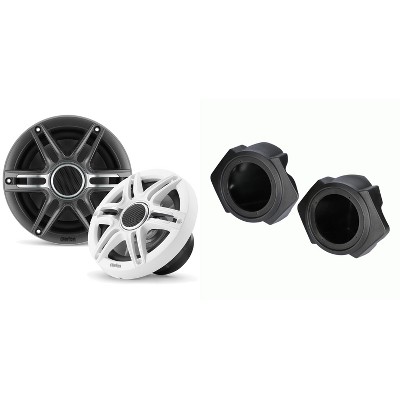 This bundle features the MPS-RZSP Polaris RZR Front 6.5" Speaker Pods designed for 2014-UP Polaris RZR models (Except PRO XP). These speaker pods offer high-quality construction with HDPE material for durability against outdoor elements. They fit 6.5"-6.75" aftermarket speakers and come with stainless steel mounting hardware for easy installation. The Clarion CMS-651-SWB 6.5-inch Coaxial Marine Speakers included in this bundle have 30W RMS power handling and a 1/2-inch polymer dome tweeter, ideal for marine use with salt and sun certification. With a sleek design including white and black sport grilles, these speakers offer quality sound performance and easy retrofitting capability. Upgrade your audio system with this bundle perfect for enhancing your outdoor adventures. Dimensions: MPS-RZSP pods fit Polaris RZR models, while Clarion CMS-651-SWB speakers have standard cutout size for mounting flexibility. Enjoy durable construction, easy installation, and impressive sound quality with this audio bundle. Ideal for marine and outdoor environments, these speakers will elevate your listening experience on the go.