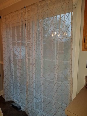 Our Clarissa Diamond Sheer Window Curtain provides an alluring update to your home. A bold diamond pattern is embroidered on a sheer fabric, creating contrast for a fresh and modern take on a classic sheer.(This also has one extra wide width panel(100x84") will work great for longer windows or patio doors, perfect for filtering the perfect amount of light into your space). Hang this sheer window curtain using the rod pocket for a simple finish. Fits up to a 1.25" diameter rod.